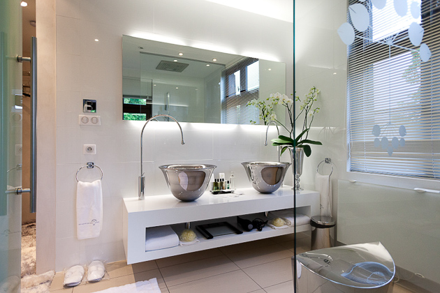 Chambre douce et spacieuse avec une magnifique salle de bain douche à l'Italienne et luminothérapie.